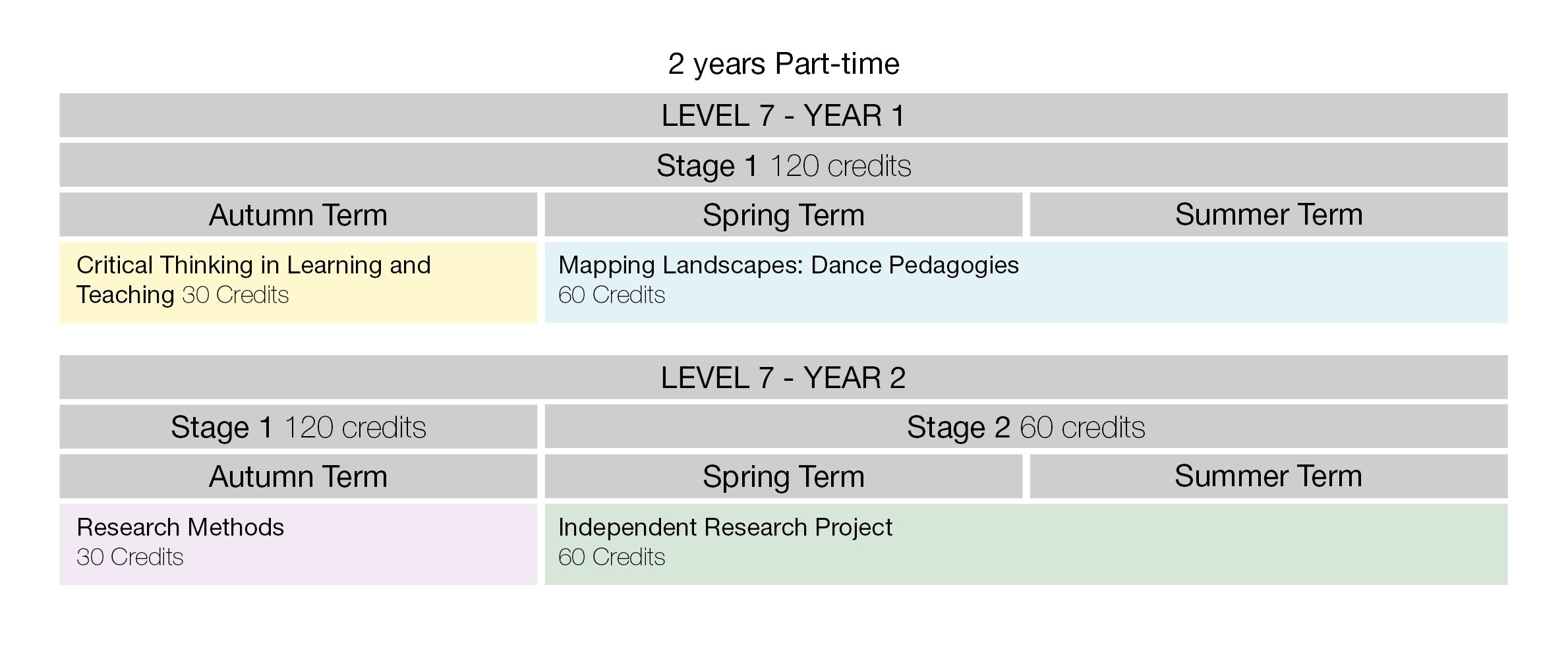 The programme blends theory and practice throughout the learning experience and offers a pedagogical focus for dance teachers / practitioners who are looking to establish greater credibility in their identity as a dance teacher / practitioner, or to move into higher level teaching environments. Throughout the MA emphasis is placed on the individual professional practice of each student. Success on this programme is through the demonstrable ability to critically reflect, evaluate, analyse, and transform, through research, one’s own community of practice and contribution to the field of dance pedagogy.